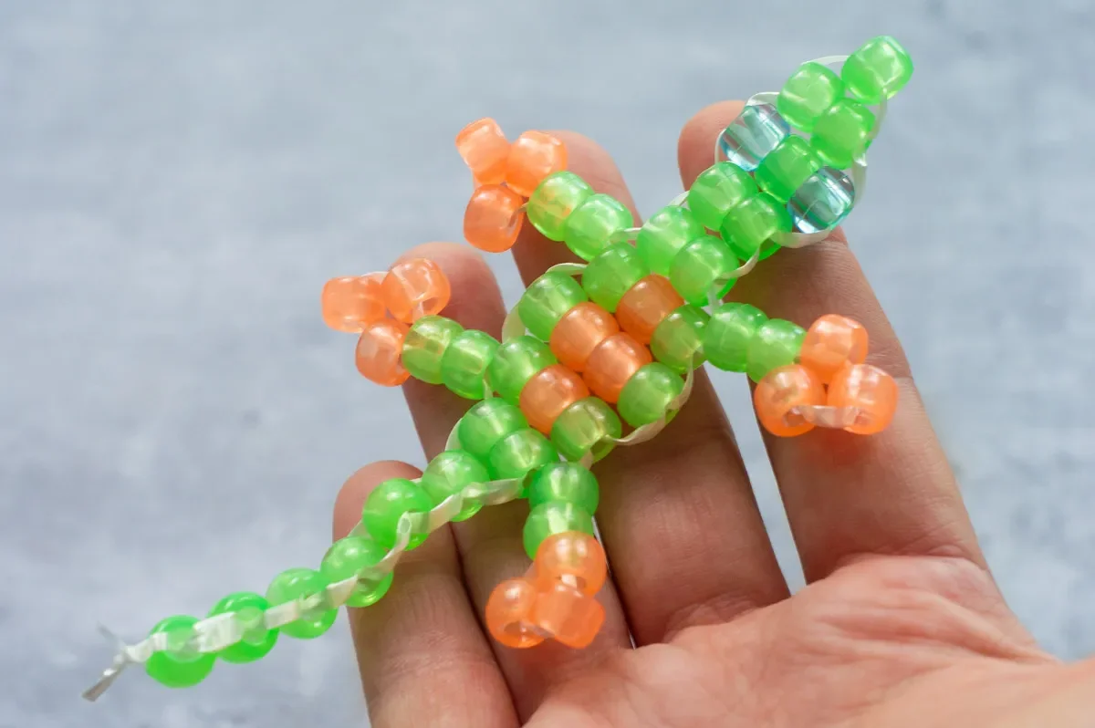 When I was in third grade or so, these lizards made out of paracord and pony beads started circulating around school. I had a friend who would make them for $1 in any colors you wanted (she was obviously very popular) and she got so busy that you had to wait 2 weeks to get your hands on one. I adored my little black and white buddy with an extra long tail (special order) and I remember thinking “Hmmm…I bet I could make this.” And I did, and I sold them at my family yard sale for a quarter each.